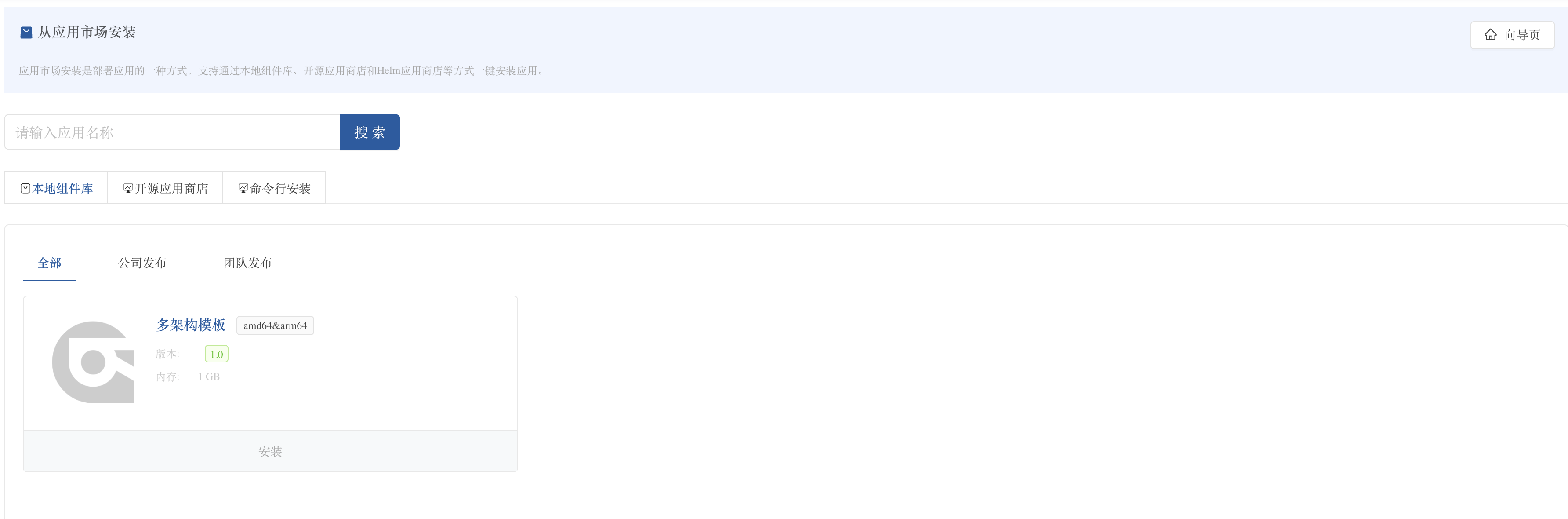 从应用市场安装 → 本地组件库 - 展示出所有已发布的应用模板,模板名称后会显示支持的架构信息