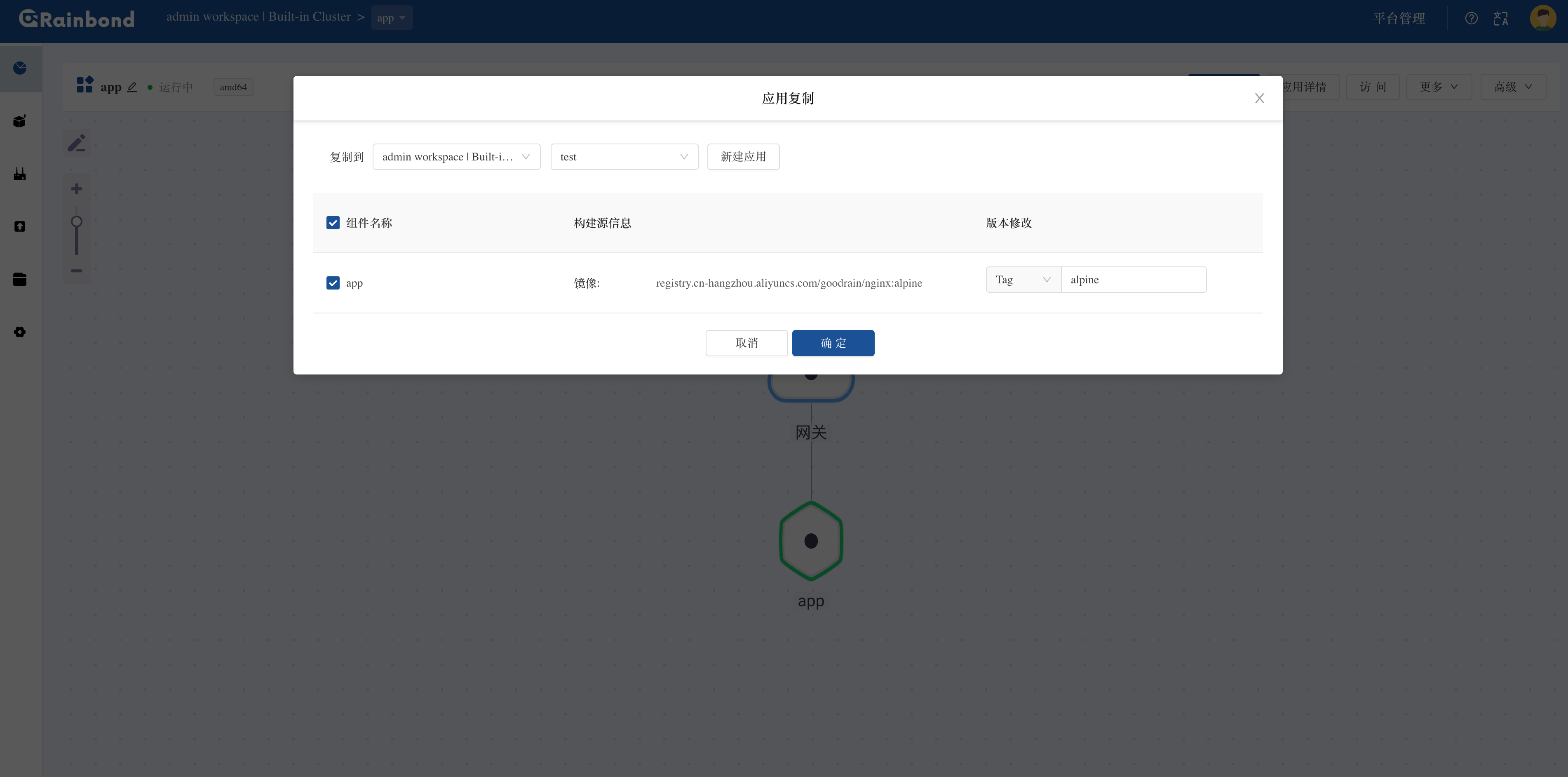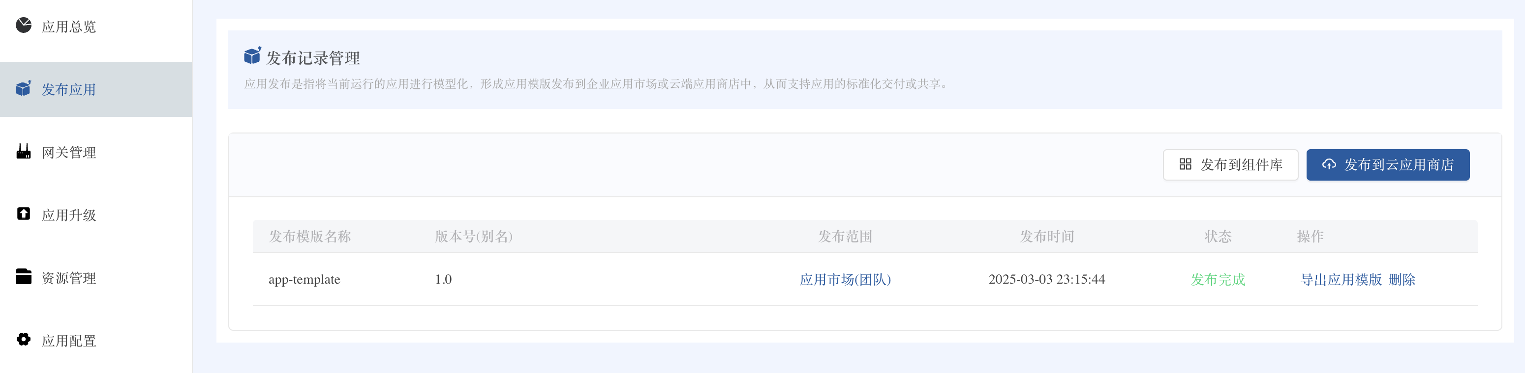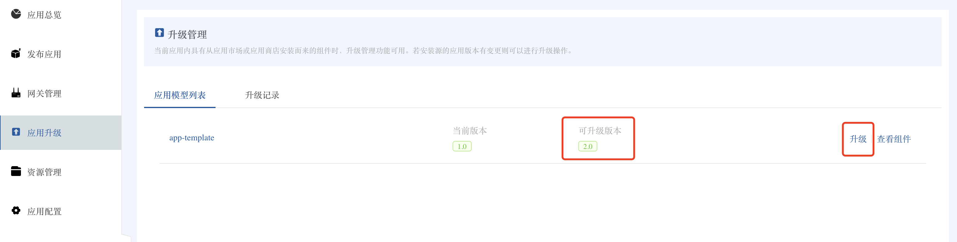 使用教程通过应用模板实现应用一键安装和升级本页总览通过应用模板实现应用一键安装和升级本教程将演示 Rainbond 应用模板管理的部分核心能力: 应用模板管理:将应用打包为可复用的模板,支持版本控制和分发。 一键部署:通过应用市场快速安装预配置的应用。 版本管理:支持应用升级和回滚,确保业务连续性。 前提条件 已完成 Rainbond 快速安装。 一、创建应用模板(1.0 版本) 🚀 亮点