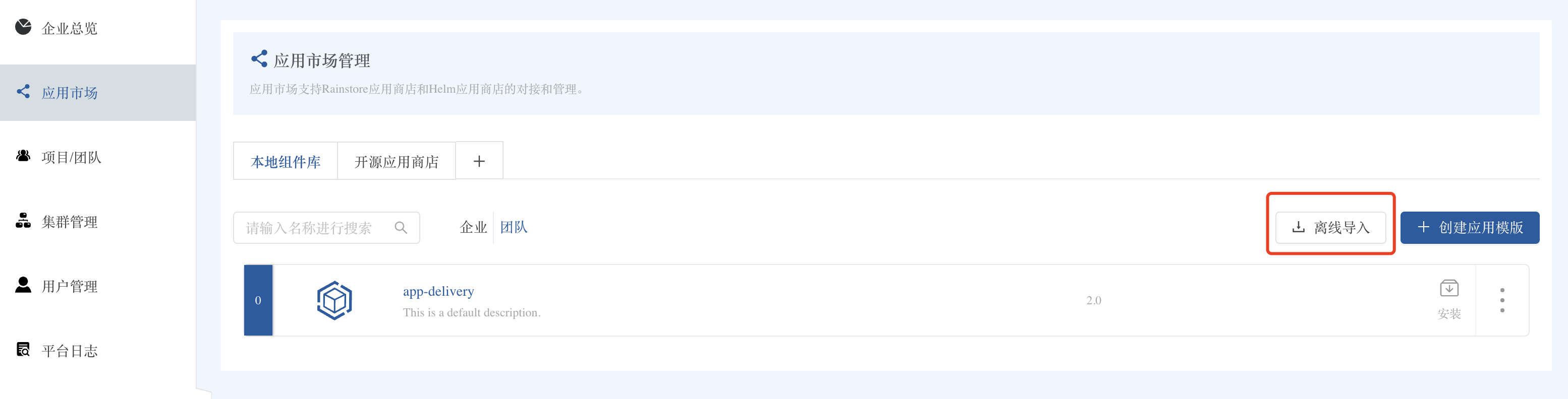 - 平台管理 ➡️ 应用市场 ➡️ 离线导入。